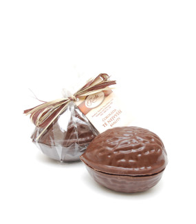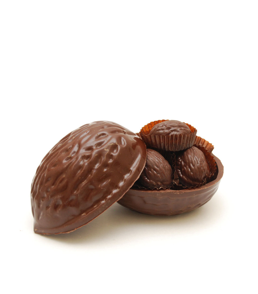 Orech je plnený pralinkami s nugátovou náplňou a vlašským orechom.