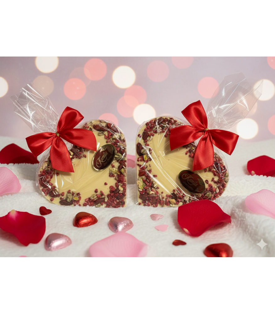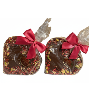 SRDCE S POSYPOM (jahody, maliny a ostružiny) z bielej, mliečnej a horkej čokolády.
