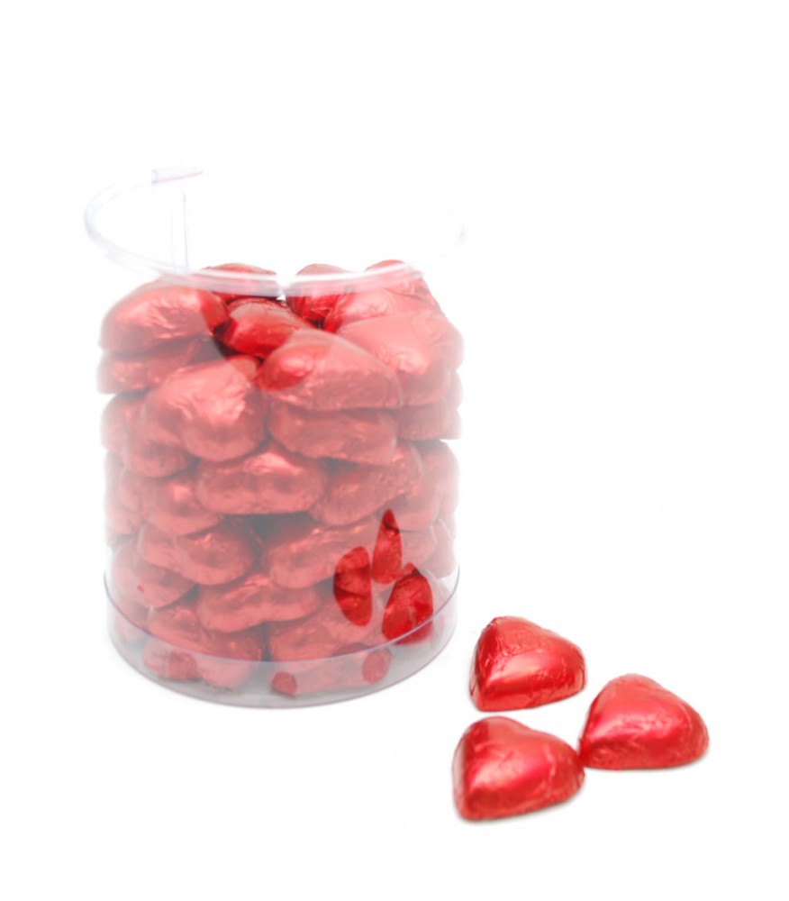 Formované čokoládové SRDIEČKA "NAJÁDA" z mliečnej čokolády (8,2g) balené v červenom AL obale.
