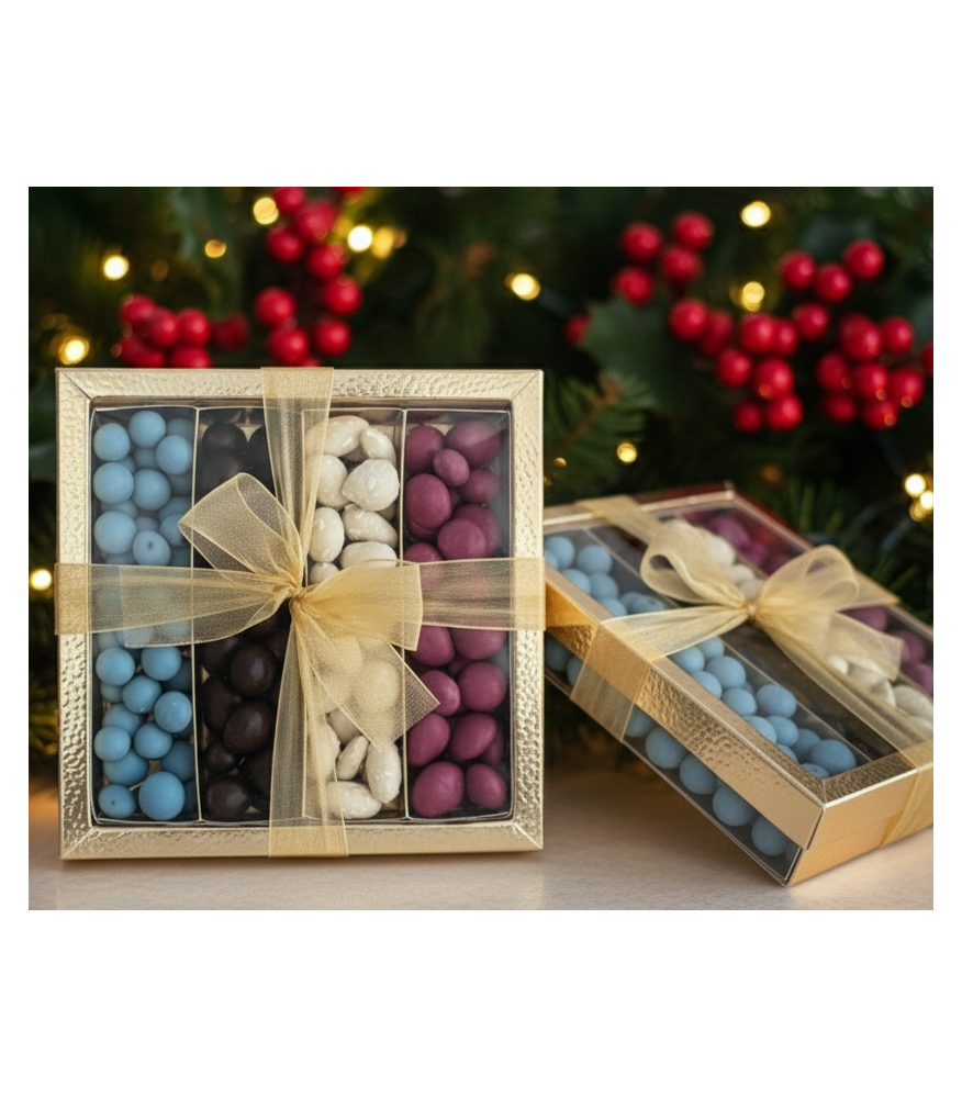 Zloženie: cukor, kakaová hmota, kakaové maslo, sušené mlieko, emulgátor - sójový lecitín, prírodná vanilka, kanadské brusnice, čučoriedky, mandle, lieskovce, arabská guma, sacharóza, glukózový sirup, cukrová repa, cukrová trstina, obilniny, kokosový a palmový olej.
